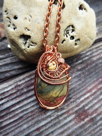 Handmade wire wrap Jasper gemstone cabochon pendant one of a kind jewelry