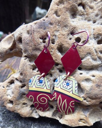 I love tins and have used them in my kitchen for years. I had a really beautiful Christmas tin that had belonged to my mother. While the outside of the tin was beautiful, the inside was trash. No one was going to want cookies out of a rusty tin, even my special Christmas cookies. Instead of throwing it into the landfill, I cut it up to make gifts of earrings, cuffs, and pendants for my friends and relatives.