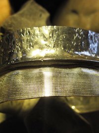 German silver sheet metal has been heated and hammered to make this primitive tribal fold form cuff. The cuff has two different textures with a hammered texture on one side and a cloth like pattern on the other. Fold forming is a very organic process where the natural tendencies of the metal and the transforming nature of fire are used to form the jewelry.